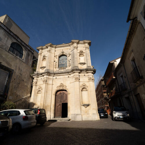 Si tratta di una mirabile costruzione settecentesca in stile barocco situata nella piazza del Seggio, in pieno centro storico di Rende. L’edificio è stato eretto a partire dalla fine del 1677, anche se è stata modificata e rimaneggiato più volte nel corso del secolo successivo, fino a conseguire, verso la fine del 1700, l’aspetto che si può ammirare oggi. La facciata della chiesta, in pietra estratta dalla cava di Mendicino, è stata realizzata nel XVIII secolo da Raffaele e Giuseppe De Bartolo, sotto l’influsso dell’arte napoletana di quel periodo. La facciata è divisa in tre sezioni, di cui la centrale è più rientrante rispetto alle laterali. Pregiate decorazioni vegetali sovrastano il portale incorniciato da colonnine. La chiesa è ricca di lesene, pilastri sormontate da capitelli in stile corinzio, e nicchie a conchiglia di chiara ispirazione barocca. All’interno dell’edificio sono presenti entusiasmanti affreschi ad opera di Cristoforo Santanna.