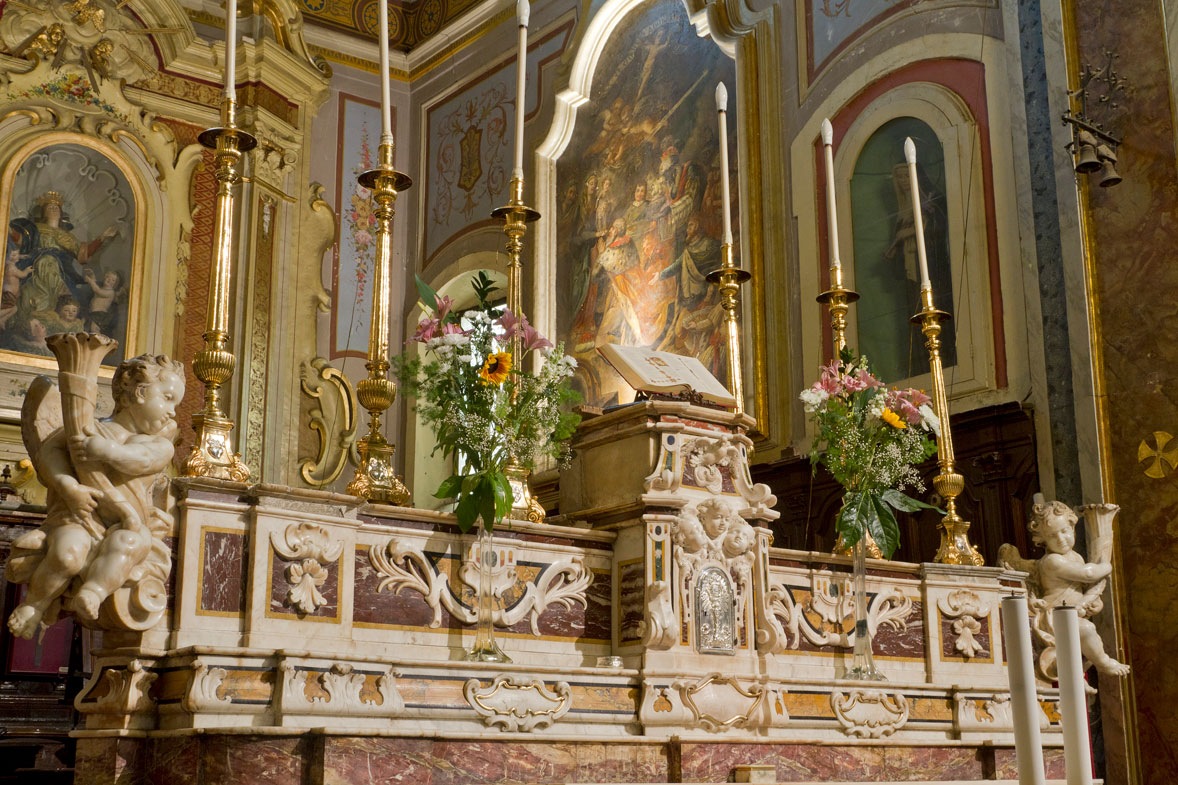 L’Apoteosi dell’Immacolata di Cristoforo Santanna – 1797 tela (m 7,00×3,00). Questo quadro fu commissionato all’artista dai frati del convento. In esso si celebra la vergine che si innalza su uno sfondo celeste tra angeli e testine alate. Vi sono inoltre rappresentati il Padre Eterno, lo Spirito Santo sotto forma di colomba e Giovanni Duns Scoto, uno dei massimi pensatori della scolastica.
